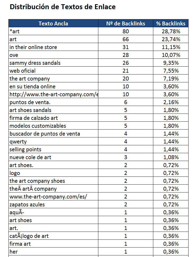 Bueno, el caso es que para analizar los enlaces, vamos a ver qué urls de la web The Art Company, reciben enlaces. Con Majestic, llegaríamos a esto: